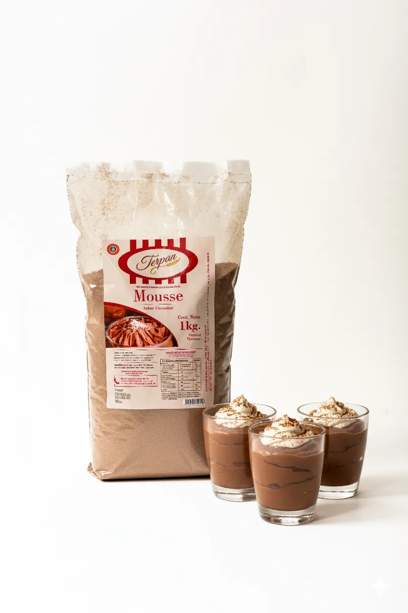 Pre mezcla en polvo para preparar mousse sabor chocolate. Presentación en 1 kg.